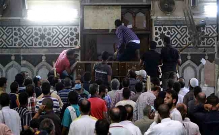 ووفق شهود عيان فان احد الاشخاص دخل الى المسجد ووضع حقيبة ومن ثم غادر الى المتوضأ ، ليعود قبل انتهاء الصلاة.