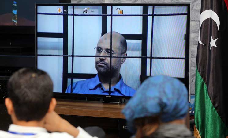واصدرت محكمة في طرابلس حكما بالإعدام بحق سيف الإسلام القذافي ومسؤولين ليبيين آخرين لارتكابهم جرائم من بينها جرائم قتل وتحريض على الاغتصاب خلال ثورة 2011، اثر محاكمة نددت بها الامم المتحدة ومنظمات غير حكومية مدافعة عن حقوق الانسان.