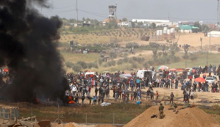 شبكة وهجة نيوز : أندلعت مواجهات الجمعة، بين مئات المتظاهرين الفلسطينيين الذين اشعلوا عشرات اطارات السيارات وجيش الاحتالال الإسرائيلي الذي يطلق الرصاص وقنابل الغاز المسيل للدموع قرب السياج الحدودي الذي يفصل بين إسرائيل وقطاع غزة.