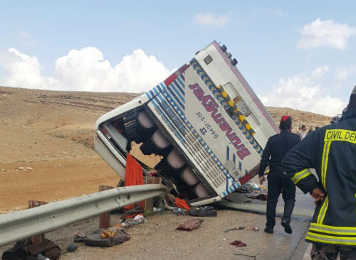 الأردن : إصابة 29 معتمرا اردنيا إثر تدهور حافلتهم / صور