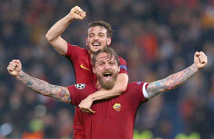 وضاعف القائد دي روسي التقدم من ركلة جزاء في الدقيقة 58 بعد مخالفة من جيرار بيكي ضد دجيكو بعدما أضاع اللاعب البوسني وزميله في الهجوم التشيكي باتريك شيك فرصتين خطيرتين قبل الاستراحة. وقال دي روسي: «هذا يمكن أن يكون فوزا رائعا لأي فريق لكن لروما وتاريخنا في البطولات الاوروبية فهذا أمر مذهل.