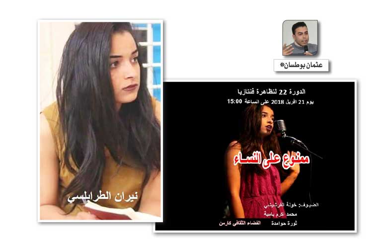 كان للثورة التونسية فضل في بروز مجموعة من التظاهرات الثقافية والأدبية كتظاهرة فانتازيا التي أسستها الشاعرة والكاتبة الشابة نيران الطرابلسي إلى جانب ريم الحياة وضحى الطرابلسي سنة 2015. شاركت الطرابلسي في تنظيم العديد من التظاهرات؛ ومن بينها: مدينة بوك كلوب، اريانة بوك كوب، منوبة بوك كلوب. كما شاركت أيضا في العديد من التظاهرات الشبابية مثل.. سيدة الكلمات، عشوية فن، جيب كتابك وايجى، أنا شريت كتاب وأنت وقتاش، ملتقى الأقلام الواعدة في صفاقس، وملتقى عيش الفن في قلبية. عن رؤية الشاعرة نيران الطرابلسي ونشاطها الثقافي كان هذا الحوار..