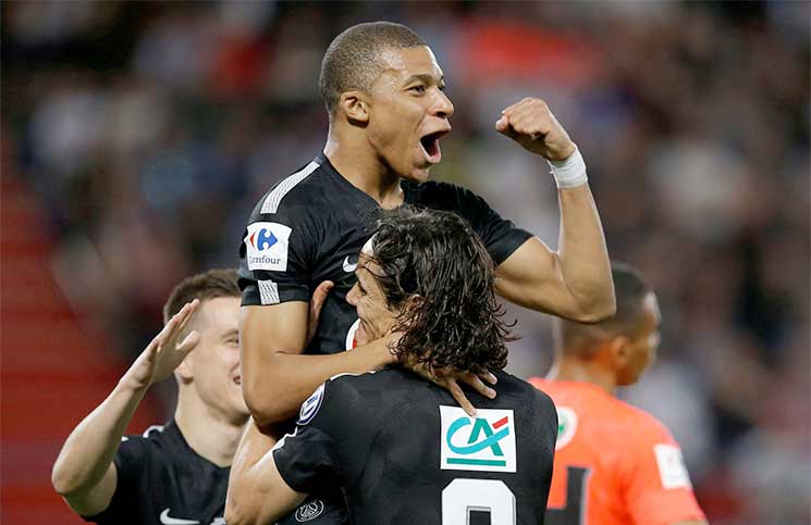 شبكة وهج نيوز : سجل النجم الشاب كيليان مبابي هدفين، أحدهما قبل النهاية بدقائق قليلة ليقود باريس سان جيرمان إلى نهائي كأس فرنسا بفوز ثمين ومتأخر 3/1 على مضيفه كان في الدور قبل النهائي.