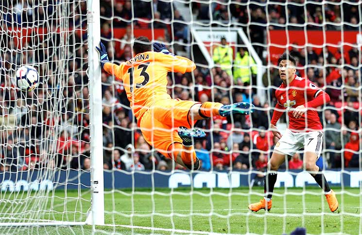 وأنهى يونايتد الشوط الأول متقدما بهدف بول بوغبا في الدقيقة 16. وفي الشوط الثاني، سجل هينريك مخيتريان هدف التعادل لأرسنال في الدقيقة 51 قبل أن يسجل مروان فيلايني هدف الفوز ليونايتد في الدقيقة الأولى من الوقت المحتسب بدل الضائع. ورفع يونايتد رصيده إلى 77 نقطة في المركز الثاني بفارق 16 نقطة عن السيتي المتصدر، وتوقف رصيد أرسنال عند 57 نقطة في المركز السادس.