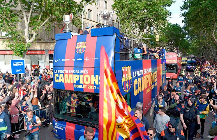 وبينما تحسر لاعبو وجماهير ديبورتيفو على عودة الفريق للدرجة الثانية لأول مرة منذ 2014، شكل لاعبو برشلونة سلسلة بشرية ورقصوا حول دائرة منتصف الملعب. وقال سيرجيو بوسكيتس: «مذاق الثنائية رائع. احراز سبعة القاب للدوري من آخر 10 يعد حدثا استثنائيا. انظر ما فعلنا هذا العام قبل اربع جولات على النهاية. مررنا بموسم مثالي في الدوري. لم نخسر طوال الموسم واحرزنا لقب الدوري بسبب البداية المميزة وهذا ما منحنا الكثير من الثقة. عقب فوزنا على اتلتيكو مدريد (في مارس الماضي) واصلنا الأداء عند أعلى المستويات».