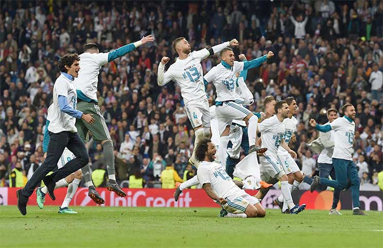 وسيلتقي الريال مع ليفربول أو روما في النهائي الذي سيقام في كييف في 26 مايو/ايار الجاري في ظل سعيه لأن يصبح أول فريق منذ البايرن 1976 يفوز باللقب ثلاث سنوات متتالية. وقال سيرجيو راموس قائد الريال: «جينات هذا الفريق تدفعك للقتال حتى النهاية. نعرف كيف بوسعنا تحمل المعاناة معا. استحوذ البايرن على الكرة بشكل أكبر لكننا كنا أفضل في المجمل. هذا الفريق يستحق ان يكون في كييف». واستفادال ريال من مساندة الحظ له في لقاء الذهاب في ميونيخ ليفوز 2-1 عقب اضاعة البايرن لعدد كبير من الفرص، وقال زين الدين زيدان ان فريقه استفاد من الفرص القليلة التي سنحت له. ورفعت جماهير الريال لافتة عملاقة قبل بداية اللقاء كتب عليها «سندافع عن العرش ونعانق المجد»، لكن البايرن هاجم مبكرا.