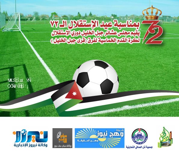 بمناسبة عيد الإستقلال الـ 72 يحتفل مجلس عشائر جبل الخليل بإطلاق بطولة ((الإستقلال)) لكرة القدم الخماسية في شهر رمضان المبارك