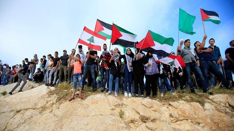 مئات الفلسطينيين يتظاهرون قرب حدود لبنان مع إسرائيل
