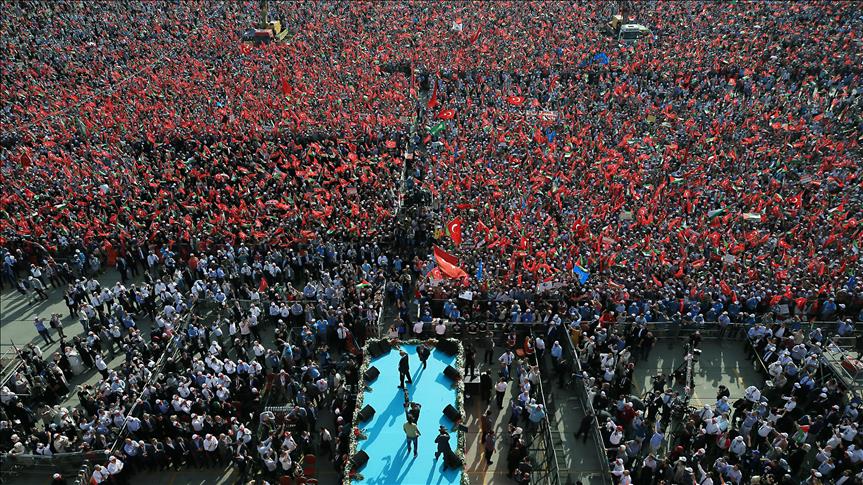 وهدفت المسيرة الحاشدة التي دعا إليها الرئيس التركي، رجب طيب أردوغان، إلى إعلان التضامن مع الشعب الفلسطيني، ورفض نقل السفارة الأمريكية إلى مدينة القدس المحتلة.