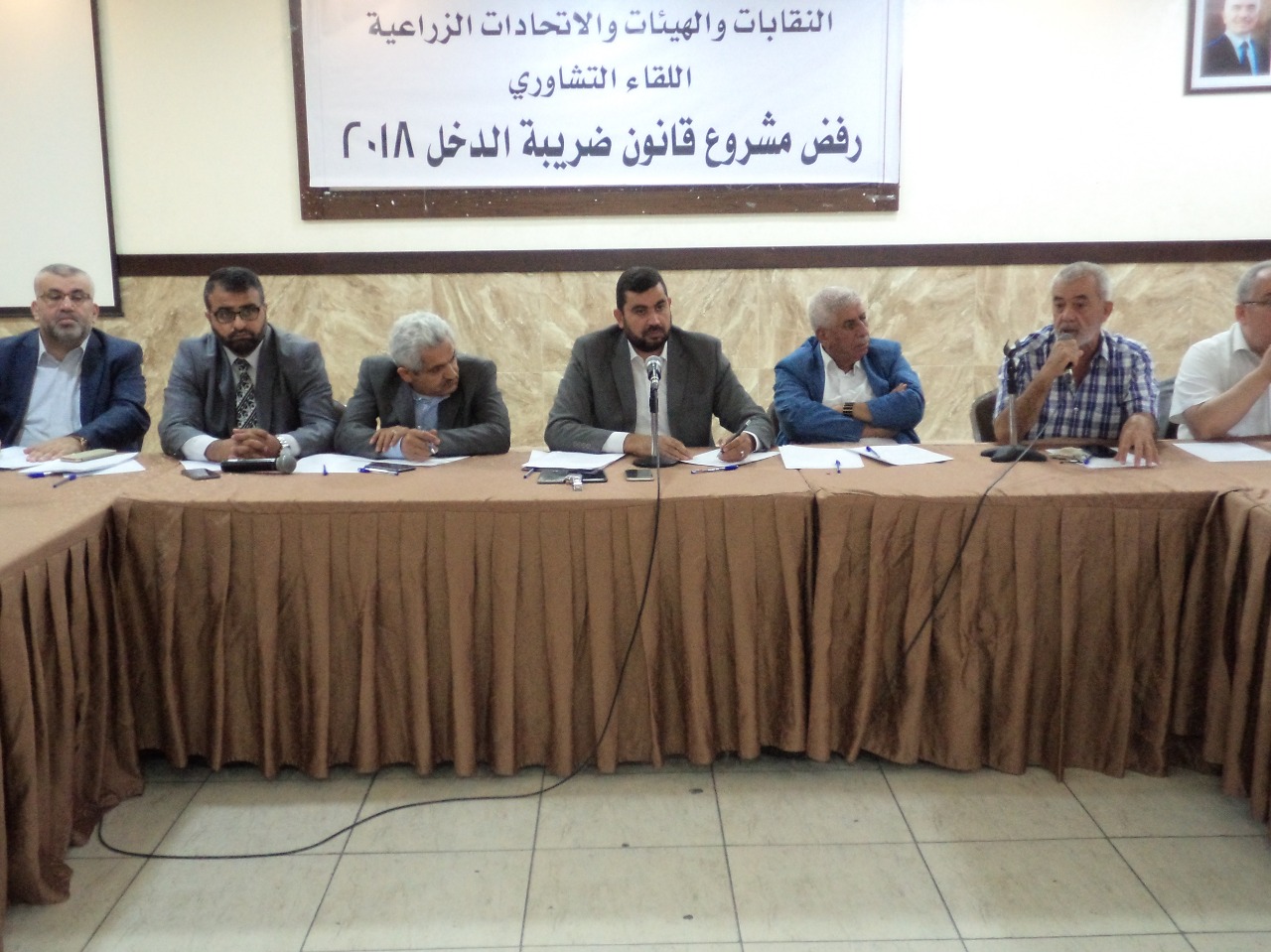 وتدارس المجتمعون قرار النقابات المهنية الداعي الى رفض مشروع قانون ضريبة الدخل ونظام الخدمة المدنية وكافة القوانين الاقتصادية التي الحقت الضرر بالوطن، استجابة لإملاءات صندوق النقد الدولي والمؤسسات المانحة.