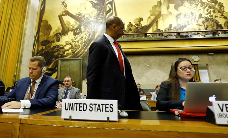 وقال السفير روبرت وود إن “وجود سوريا هنا مهزلة، من غير المقبول أن يترأسوا (السوريون) هذه الهيئة. ليس لديهم لا السلطة المعنوية ولا المصداقية للقيام بذلك”.