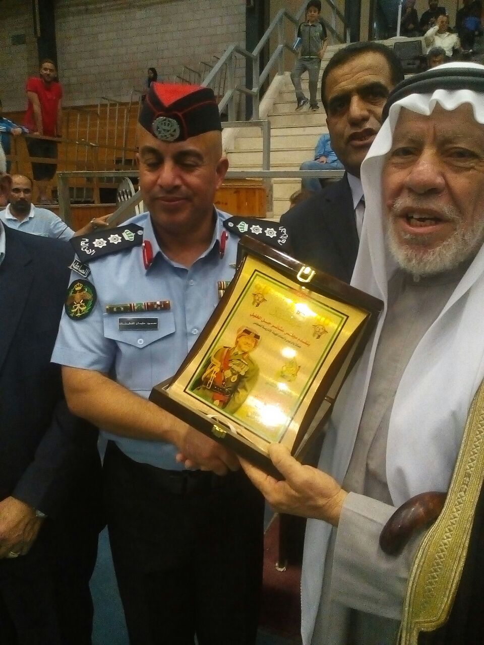 شبكة وهج نيوز : مندوبا عن مدير الامن العام رعى عطوفة الامين العام للاتحاد الرياضي للشرطة العقيد محمود قطيشات احتفال مجلس عشائر جبل الخليل (دوري استقلال المملكة ال 72 لخماسيات قرى جبل الخليل ) في قصر الرياضة مدينة الحسين للشباب مساء الاربعاء الموافق 6/6/2018 وقد تخلل الاحتفال الذي شاركت فيه قيادة موسيقات الامن العام (مباراة نهائية للدوري جمعت فريق ابناء ترقوميا وفريق ابناء ذكرين) وتم توزيع الميداليات والدروع على الفرق المشاركة بالدوري وتم تكريم فريق (ذكرين) الفائز بالمركز الاول في هذه البطولة وتاتي هذه البطولة تجسبدا للولاء والانتماء للوطن وقائد الوطن حفظه الله ورعاه من قبل ابناء عشائر جبل الخليل .