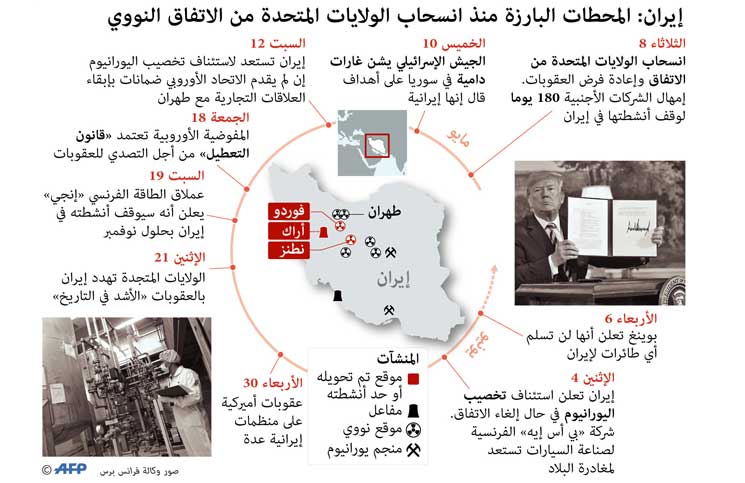 وقالت واشنطن الشهر الماضي أنها ستفرض عقوبات اقتصادية، بعد الانسحاب من الاتفاق الذي ابرمته القوى العالمية مع إيران ووافقت طهران بموجبه على تقليص أنشطتها النووية في مقابل تخفيف العقوبات.