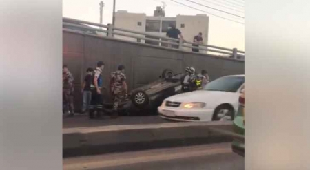 انقلاب مركبة داخل نفق الدوار السادس في عمان