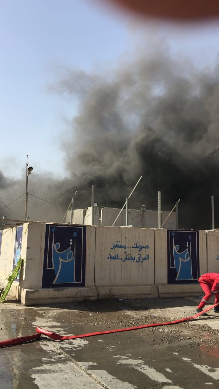 وأفاد متحدث باسم #الداخلية_العراقية اللواء سعد معن أن الدفاع المدني يحاول السيطرة على نيران الحريق.