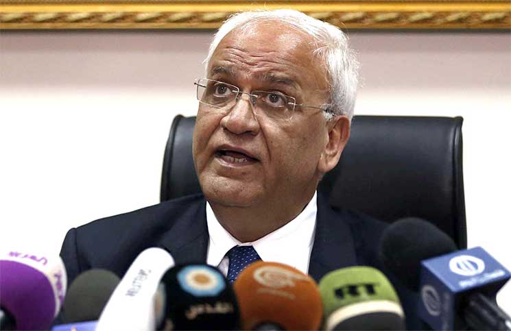 ودعا عريقات لعدم ترك مستقبل السلام العالمي في أيدي مبعوثي الرئيس ترامب، مطالباً بتدخل المجتمع الدولي.