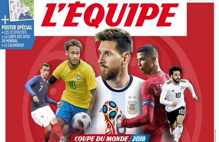 شبكة وهج نيوز : تصدرت صور كل من كريستيانو رونالدو، قائد المنتخب البرتغالي وأفضل لاعب في العالم حالياً، وخصمه اللدود ليونيل ميسي، قائد المنتخب الأرجنتيني ونجم المنتخب البرازيلي نيمار دا-سيلفا ومهاجم المنتخب الفرنسي آنتوان غريزمان و نجم كرة القدم المصرية والعربية والإفريقية محمد صلاح، غلاف عدد صحيفة’’ ليكيب’’ الفرنسية الصادر، الخميس، تزامناً مع انطلاق بطولة كأس العالم لكرة القدم في روسيا.