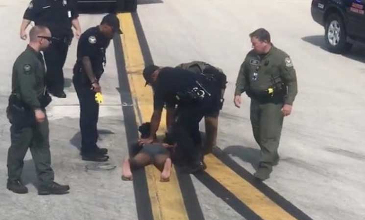 وأظهرت لقطات فيديو وضعها ركاب داخل الطائرة على الإنترنت رجلا حافي القدمين لا يرتدي سوى سرواله التحتي يتحدث إلى نفسه على ما يبدو ويسير بالقرب من الطائرة.
