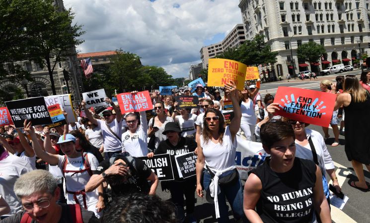 شبكة وهج نيوز : احتج مئات الأشخاص، مساء الخميس، أمام الكونغرس الأمريكي، ضد سياسات الرئيس دونالد ترامب الحالية حول الهجرة، ما اضطر الشرطة لتوقيف 575 منهم.
