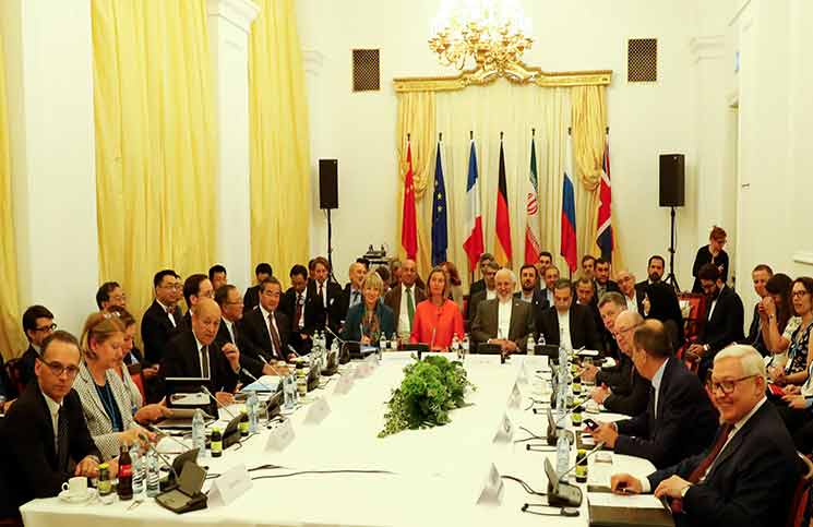 والتقى وزراء خارجية الدول الكبرى الخمس الموقعة على الاتفاق النووي مع ايران بفيينا مع نظيرهم الايراني للمرة الاولى منذ انسحاب واشنطن من الاتفاق.