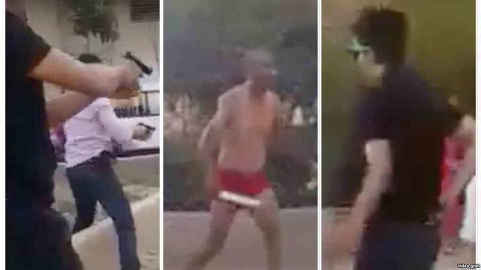 وظهر الشخص الذي يبدو من هيئته أنه منحرف وهو يصرخ في وجه الشرطة بعبارات لا أخلاقية ويهاجمهم بسيوف في الشارع العام بمدينة فاس، الأمر الذي دفع عناصر الأمن إلى التراجع للوراء، رغم أنهم كانوا يحملون أسلحة، وهو ما شجّع المنحرف على التمادي في تهديدهم، بمساعدة شقيقته التي تدخلت لإقناع الشرطة بتركه وشأنه.