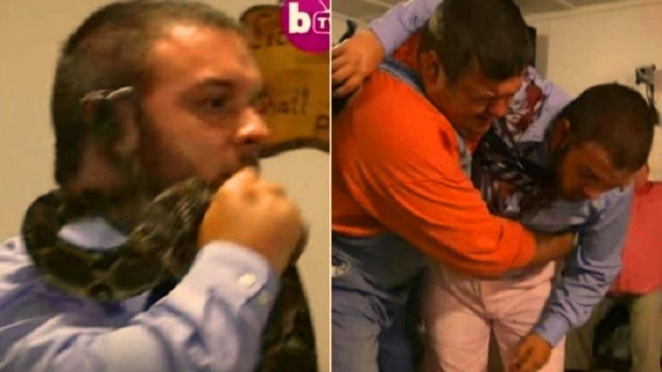 انظر إلى قسيس يتحدى الأفعى فتلدغه أثناء موعظته بالكنيسة