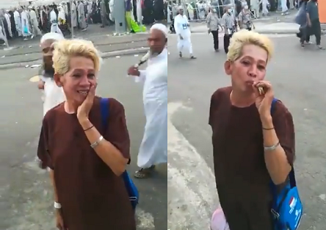 ووفقا للفيديو المتداول الذي رصدته “وطن”، فقد تفاجأ الحجاج أثناء رميهم للجمرات بظهور شخص غلب عليه الملامح النسائية ويرتدي زيا نسائيا وبلا غطاء رأس أثناء عودته من رمي الجمرات.