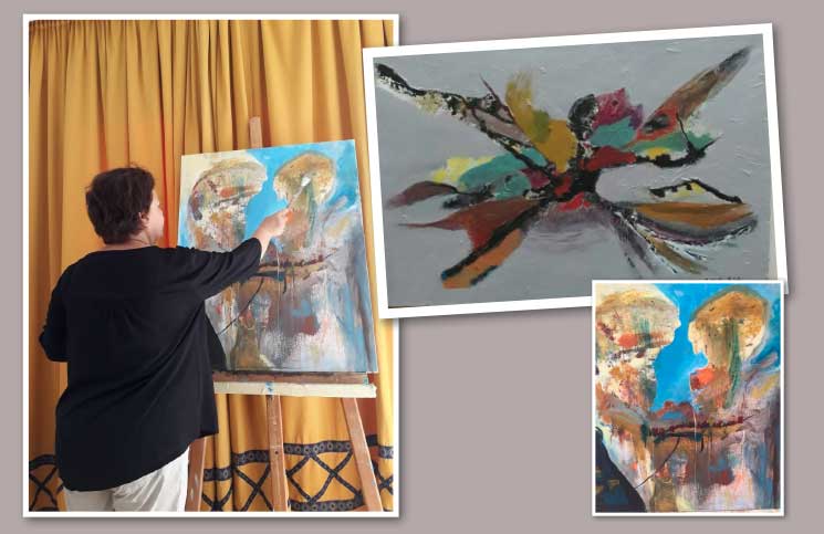 إن ريشة المبدعة تتغيى المسار التحديثي والتوظيف الجمالي للألوان، على الرغم من عامل اكتساح المساحات بعفوية وتلقائية وفطرية، إلا أن الشحنات السيميولوجية، وبعث جملة من الأشكال المثقلة بطابع الرمزية، وعملية التنظيم والتوليف؛ كلها عناصر تدعم المنحى التحديثي والبعد الجمالي والقيم الفنية المعاصرة. ويتبدى أن هذا التأطير يأتي في سياق التجربة الفنية المائزة للمبدعة، التي تروم التجريد المعاصر باستعمالات فنية رائقة، وهي في مجملها تجربة تضطلع بتقنيات عالية الجودة، في وضع تشكيلي مخالف للمستهلك، تقصد به التحرر من القيود واستحضار التجربة الفنية القائمة على قاعدة من المقومات الثقافية والتراثية، والأشكال والمفردات الفنية المعاصرة، وذلك للمزج بين مفارقتي الموروث الحضاري والتداعيات الوجدانية والرؤى المتنوعة بسحرها الجمالي، المدجج بتأثيرات الفن المعاصر، ما يجعل من أعمالها التشكيلية والفسيفسائية وعاء لحزمة من الأشكال والألوان المعاصرة.