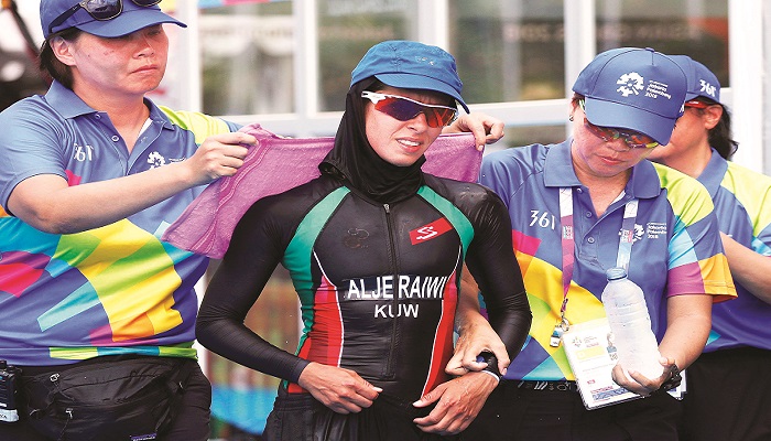 من جانبه، حقّقت نجلاء الجريوي المركز الخامس عشر وفاطمة الغانم المركز الثامن عشر في سباق ترياثلون للسيدات، الذي أقيم فجر أمس.