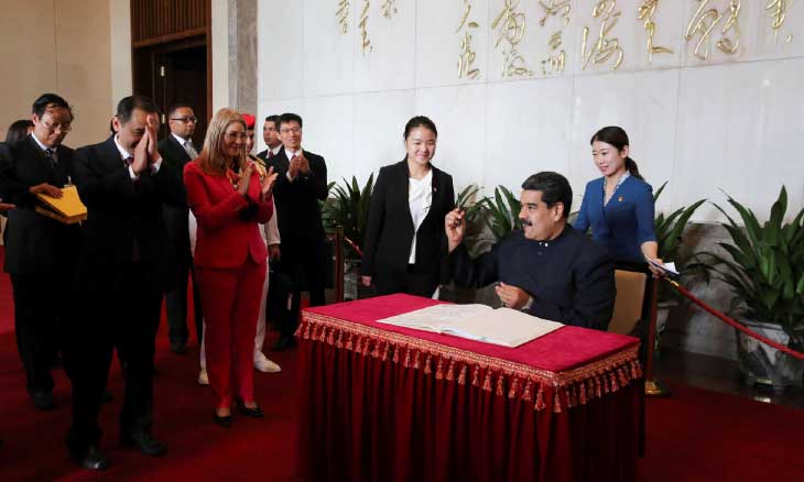 واثنى الرئيس الفنزويلي طويلا على الرئيس الصيني شي جيبينغ، مشيدا بشعار «مصير مشترك للانسانية»، وقال ان الصين ترسم للعالم مصيرا «بدون امبراطورية مهيمنة تمارس الابتزاز والسيطرة ومهاجمة الشعوب»، مؤكدا أن «الصين هي شقيقتنا الكبرى».