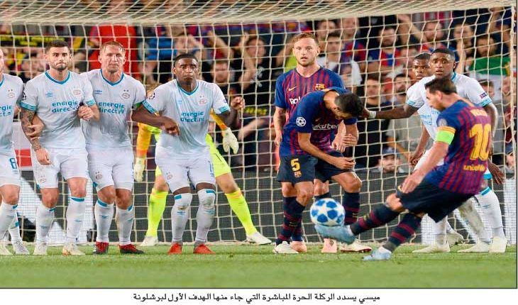 وأنهى ميسي هداف برشلونة عبر العصور، حالة الجمود في الدقيقة 31 في ملعب «نو كامب» من ركلة حرة رائعة وضعها من فوق الحائط البشري في الشباك. وهو الهدف الثاني الذي يسجله من ركلة حرة في ثلاث مباريات على أرض برشلونة هذا الموسم. وقال إرنستو بالبيردي مدرب برشلونة: «قام ميسي بأشياء غير عادية ولكنه يجعلها تبدو بسيطة». وتابع: «نعيش حقبة فريدة بوجود ميسي وعندما يعتزل سيكون من الصعب العثور على لاعب مثله». وقدم آيندهوفن الذي يقوده مارك فان بومل لاعب برشلونة ومنتخب هولندا السابق، أداء مثيرا للاعجاب في أول زيارة إلى «نو كامب» في 21 عاما قبل أن تخور قواه في نهاية الشوط الثاني. وفي الشوط الأول نجح الفريق الهولندي في احباط معظم هجمات برشلونة، كما شن هجمات مرتدة خطيرة سدد منها الدولي المكسيكي هيرفينغ لوزانو فوق العارضة بعد الاستراحة. لكن بطل إسبانيا أظهر الفوارق الكبيرة في المستوى مع مضي الشوط الثاني قدما، وضاعف الغلة في الدقيقة 75 بتسديدة جميلة من عثمان ديمبيلي الذي سجل خامس أهدافه في ست مباريات في كل المسابقات هذا الموسم. وأحرز ميسي هدفه الشخصي الثاني والثالث لفريقه بعدها بدقيقتين مستفيدا من تمريرة إيفان راكيتيتش الرائعة، وأكمل بعدها الثلاثية الشخصية في الدقيقة 87 بعدما تلقى تمريرة جميلة أخرى، هذه المرة من لويس سواريز ليضعها في الشباك بمهارة. لكن الفرحة لم تكتمل بطرد مدافع فرنسا أومتيتي في الدقيقة 79 لحصوله على الانذار الثاني ليغيب عن مباراة برشلونة خارج أرضه أمام توتنهام في الثالث من اكتوبر/تشرين الاول. وأشاد فان بومل مدرب آيندهوفن بميسي قائلا: «ميسي أفضل لاعب في العالم واستغرب عدم فوزه بجائزة الكرة الذهبية كل عام، لكن إجمالا أعتقد أن النتيجة كانت قاسية».