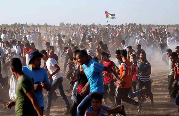 ويتجمهر آلاف الفلسطينيين، منذ نهاية مارس الماضي، في عدة مواقع قرب السياج الفاصل بين القطاع وإسرائيل، للمطالبة بعودة اللاجئين الفلسطينيين ورفع الحصار عن غزة.