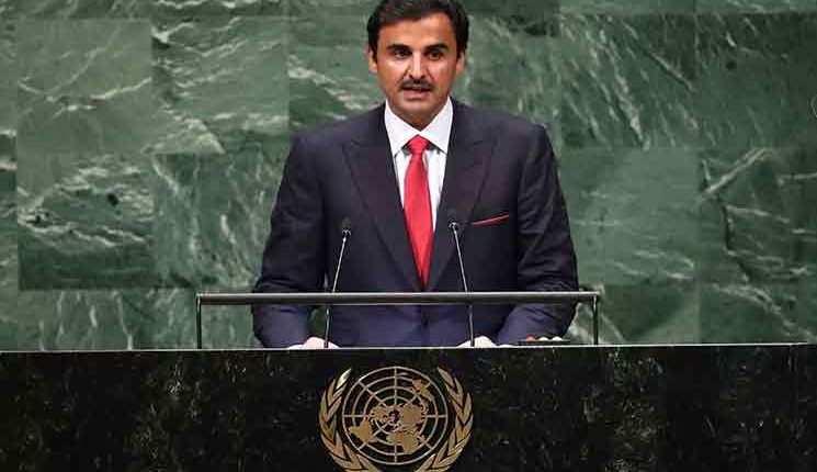 أمير قطر من الأمم المتحدة: متمسكون بالحوار لحل أزمة الحصار.. ولا لتصفية القضية الفلسطينية