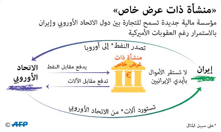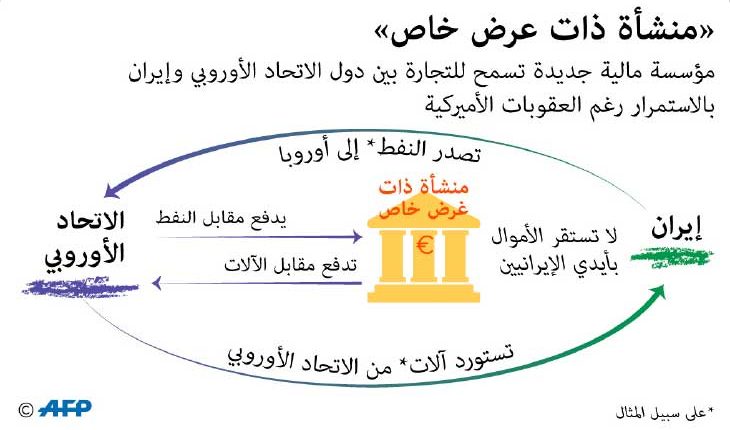 وقال مصدر دبلوماسي فرنسي ان هذه الآلية «تحصن» الشارين والبائعين من خلال تجنيبهم صفقات بالدولار يمكن أن تعرضهم لعقوبات أمريكية. وأضاف أن «النفط هو المقابل الوحيد الذي يمكن لإيران تقديمه (…) والآلية تسمح باستخدام عائدات النفط لاستيراد سلع».