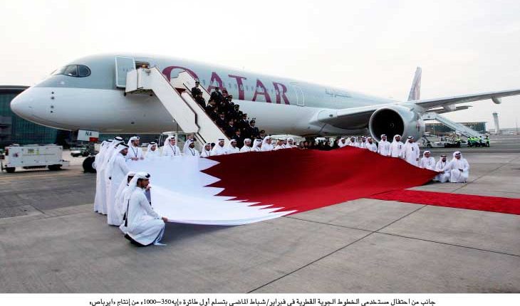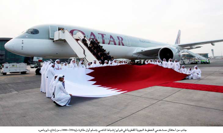 يشار إلى أن «الخطوط الجوية القطرية» هي أكبر مشتر للطائرة «إيه350» حيث طلبت شراء 76 طائرة منها 42 طائرة «إيه350-1000» بقيمة 367 مليون دولار وفقا للأسعار المعلنة. وتقول «إيرباص» ان تصميم الطائرات «إيه350» المخصص للخطوط القطرية يتضمن 44 مقعدا أضافيا بمقارنة مع طائرة «إيه350-900».