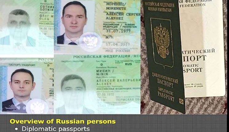 وفي مؤتمر صحافي قال رئيس جهاز الاستخبارات الهولندي الجنرال اونو ايكلشيم أن الروس الأربعة توجهوا إلى مطار شيبول في امستردام في العاشر من نيسان/ابريل مستخدمين جوازات سفر دبلوماسية روسية والتقاهم مسؤول في السفارة الروسية.
