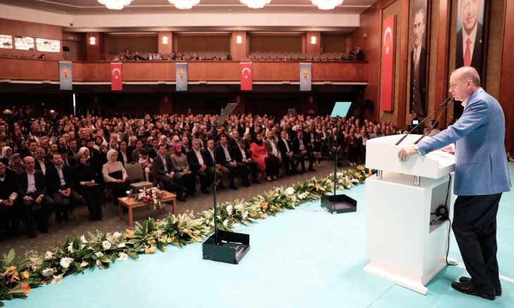 وشدد الرئيس التركي على أن أحدا لا يمكنه التدخل في شؤون تركيا الداخلية، بعد أن حققت النهضة في عهد حزب «العدالة والتنمية». وأضاف «ما دامت الروح في هذا الجسد، فلا يستطيع أحد أن يضع تركيا تحت نير المؤسسات الدولية»، مؤكدا أنه «لن يستطيع أحد تركيع تركيا مرة أخرى، بعد أن جعلناها تنهض على قدميها».