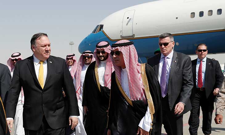 وتنضاف إلى المصلحة المالية في حالة ترامب، مصلحة سياسية تتمحور حول شخص وليّ العهد السعودي محمد بن سلمان الذي هو أكثر أعضاء العائلة السعودية الحاكمة استعداداً على التواطؤ المكشوف مع ترامب وصديقه الحميم رئيس الوزراء الصهيوني بنيامين نتانياهو في الطعن بمصالح الشعب الفلسطيني. وفي وقت كتابة هذه الأسطر بالذات، يجتمع مايك بومبيو، وزير خارجية ترامب الحالي ومدير وكالة الاستخبارات المركزية لديه حتى الربيع الماضي، يجتمع بالمسؤولين السعوديين كي يُخرج معهم سيناريو «القتلة المارقين» الذي أعلنه ترامب إثر مكالمته الهاتفية مع العاهل السعودي، سلمان بن عبد العزيز. والغاية من هذا السيناريو تبرئة وليّ العهد، بالرغم من أن الصحافة الأمريكية أشارت إلى امتلاك الأجهزة الأمريكية لتسجيل مكالمات تؤكدّ مسؤولية محمد بن سلمان الشخصية والمباشرة عن اختفاء الصحافي.