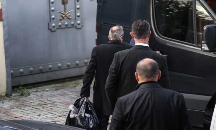 والجمعة وقفت حافلة صغيرة ذات نوافذ مظللة في وقت مبكر أمام بوابة القنصلية السعودية الواقعة بمنطقة “ليفنت” بإسطنبول.