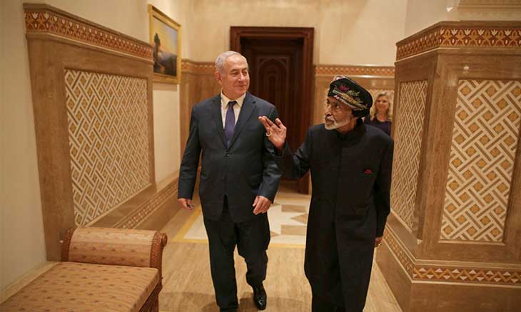 يوم الجمعة، وبحلول 24 سنة على اتفاق السلام بين دولة إسرائيل والمملكة الأردنية، أجرى رئيس الوزراء زيارة تاريخية. لم يذهب إلى عمّان القريبة ليرفع نخبًا مع الملك عبد الله لحياة استمرار علاقات السلام مع المملكة الهاشمية؛ بل ذهب بعيدًا إلى سلطة عُمان، التي تقع في الجانب الجنوبي من شبه الجزيرة العربية، مقابل إيران. ليس لنا علاقات سلام رسمية معهم، ولكن السلطان قابوس على ما يبدو مستعد للتعاون معنا، من أجل السلام. وهكذا أثبت نتنياهو قوله، الذي يكاد يطرحه مؤخرًا في كل مناسبة، حول تحسن علاقات إسرائيل مع بعض الدول العربية بشكل غير مسبوق، وذلك كلما اشتد العداء نحونا في الدائرة القريبة، في حدودنا مع سوريا ودولة غزة، بتشجيع إيران وتركيا غير العربيتين. كما أنه ذهب ليطلق إشارة إلى إيران المجاورة: أنتم في سوريا، نحن قريبون منكم، في الخليج الفارسي.