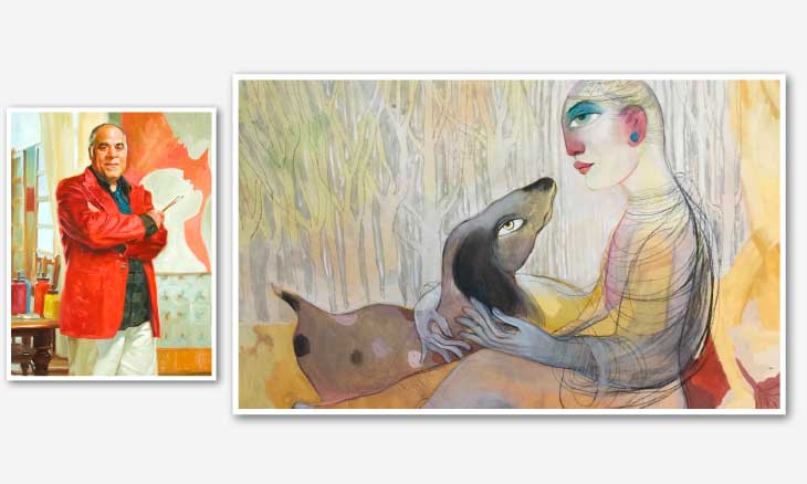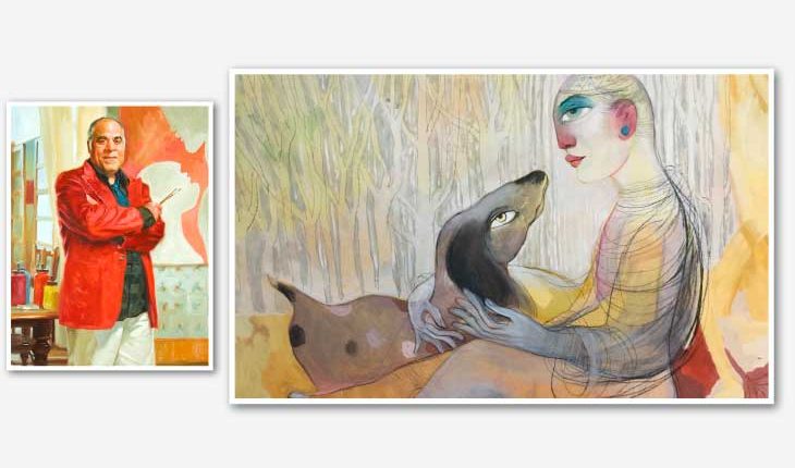 في معارضه الأخيرة، وفي هذا المعرض الشخصي تحديدًا، ثمة لوحات رومانسية، مُغرِقة في شاعريتها، لكنها مجردة من الميوعية العاطفية المُفرطة، لأنّ هذه الأخيرة نقطة ضعف، وليست علامة قوة، وإنما هناك زخم كبير من الشاعرية أو الشعرية إن شئتم، لأن أعماله الأخيرة تنضح بالشعرية والشاعرية في آنٍ معًا. دعونا نتأمل بعض اللوحات لنؤكد صحة ما نذهب إليه، مع ترك التأويلات الأخرى مفتوحة لمخيلة المتلقين. فلوحة «الذاكرة والحبيب» لا تحتاج قطعًا لهذا العنوان الذي يُمهِّد للولوج إلى عالم هذا العمل الفني المتفرّد، الذي رسمه بخطوط متقشفة جرّدته من كل الزوائد التأثيثية الفائضة عن الحاجة. فهذه الفتاة بعُنُقها الطويل، ورأسها المرتفع بموازاة السماء لابد أنها تتذكر الحبيب، أو ترى صورته مرسومة في كبد السماء في لحظة نادرة من التخيّل والتمنّي والاستذكار. قد تكون عظمة هذه اللوحة في طريقة تكوينها، وأسلوب بنائها، ولكن الأهمّ من ذلك كله الخطوط اللينة التي أنجز بها الفنان هذا «الفيكَر» وحمّله بكل هذه المضامين الجمالية المتفردّة، التي يتوّجها هذا الشَعر المُرسل مثل شلالٍ ليليٍ هابطٍ على الكتفين.
