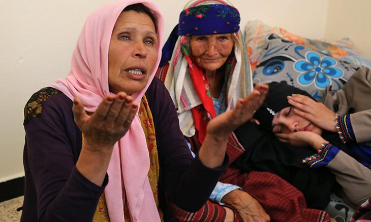 وأضافت ذهبية وهي تخبط بيديها على رجليها جالسة على بساط من البلاستيك مخاطبة ابنتها “لماذا فعلت بنا هذا؟ ماذا فعلنا لك لتجعلينا نعيش هذه الكارثة؟”.