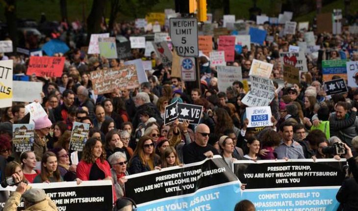 وكان الرئيس الأمريكي دان منذ السبت بشدة إطلاق النار ودعا إلى القضاء على “سم معاداة السامية”. لكن كثيرين أخذوا عليه امتناعه عن إدانة اليمين المتطرف في خطبه النارية.