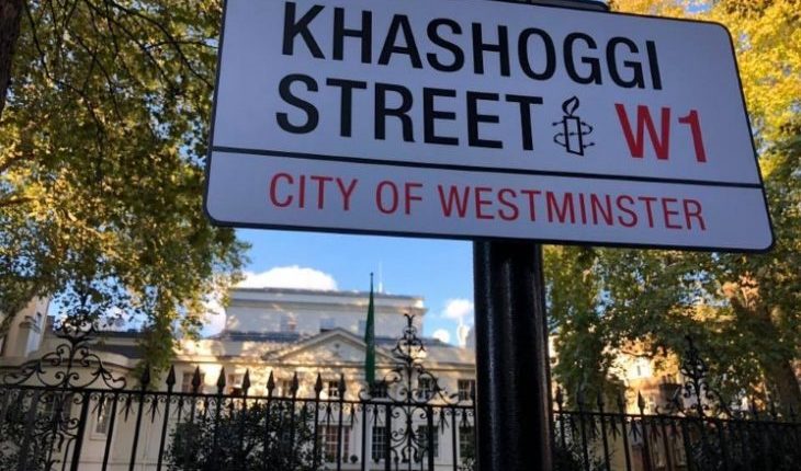 وفي تعليق لـ”القدس العربي” قال غياث الجندي مسؤول الحملات في منظمة العفو الدولية – بريطانيا، غيرنا اسم شارع السفارة السعودية في لندن مؤقتا إلى اسم الصحافي جمال خاشقجي، للتنديد بجريمة قتله في قنصلية بلاده، وطالبنا بمحاسبة المسؤولين السعوديين الذين أصدروا الأوامر بالقتل ومحاسبة منفذي الجريمة. وأوضح الجندي أن منظمة العفو الدولية مستمرة بالضغط على الحكومة البريطانية من أجل إعادة تقييم علاقتها مع الرياض وتوقيف تصدير السلاح إلى الحكومة السعودية.