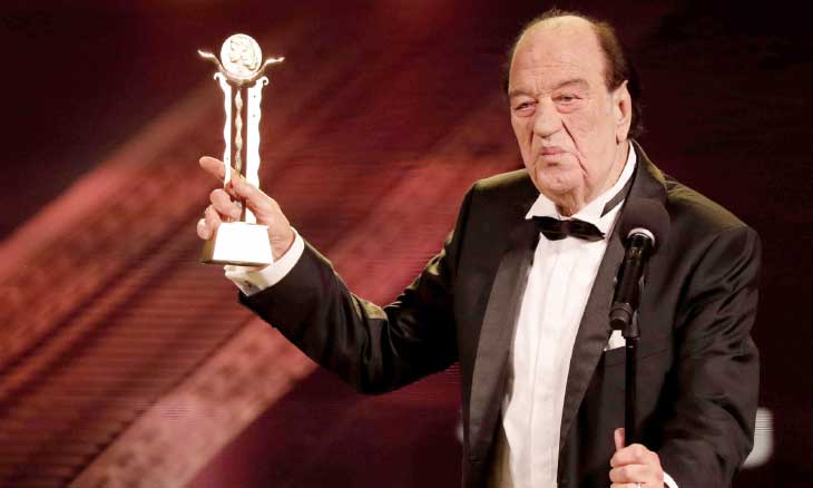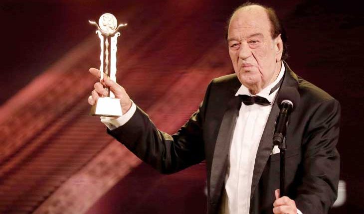 حسن حسني يبكي أثاء تسلمه درع «فاتن حمامة» في حفل افتتاح «مهرجان القاهرة السينمائي»