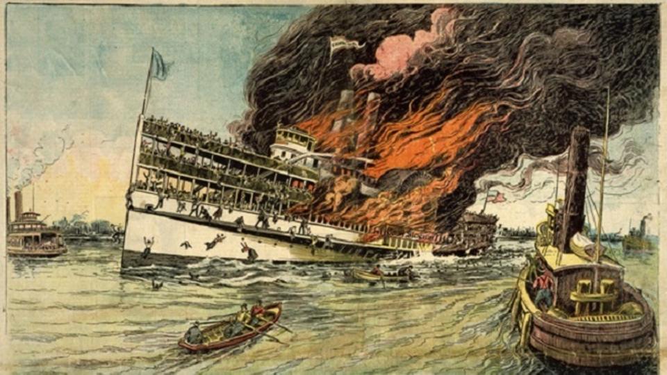 بادئ الأمر، سارت الأمور على ما يرام لكن في حدود الساعة العاشرة صباحا قام الكابتن فان شايك (Captain Van Schaick) بتحذير باندلاع حريق على متن السفينة الجنرال سلوكم، وبدل الاقتراب من اليابسة لإنزال الركّاب وإنقاذهم فضّل الأخير الإبحار ومواصلة الرحلة ليتسبب على إثر ذلك في واحدة من أسوأ الكوارث في تاريخ نيويورك.