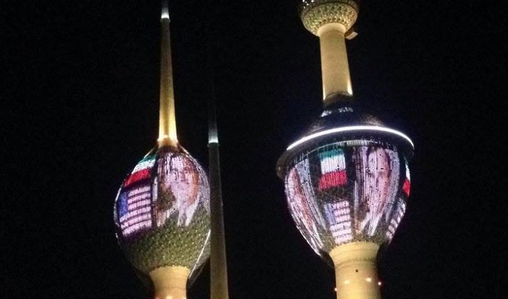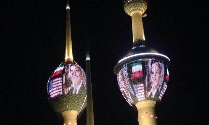 إضاءة أبراج الكويت بصور جورج بوش الأب- (فيديو)