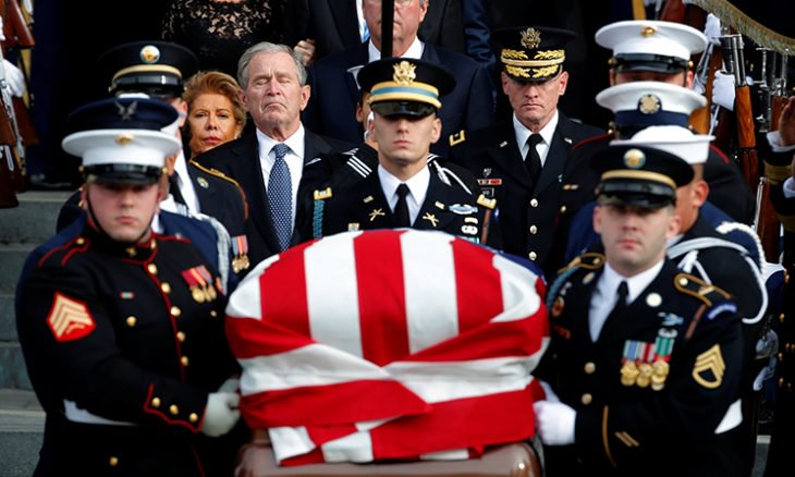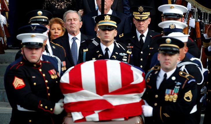 ونحيت الخلافات السياسية في واشنطن جانبا تكريما للرئيس الراحل، وهو طيار بحري أسقطت طائرته فوق المحيط الهادي في الحرب العالمية الثانية.