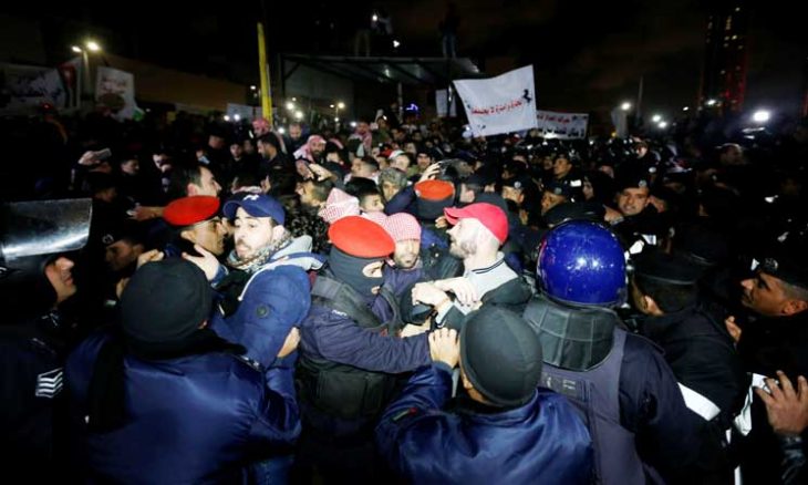 وأوقفت السلطات الأردنية، الجمعة، 17 محتجًا بتهم “الشغب” و”التجمهر غير المشروع”، فيما أفرجت عن 18 آخرين.