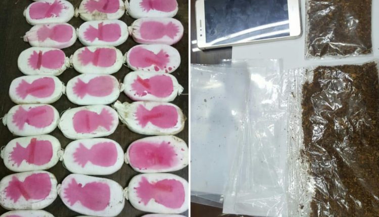 وكان من ابرزها ضبط ٣٠ كف من مادة الحشيش المخدرة اخفيت داخل احد المنازل المهجورة في احدى مناطق البادية الوسطى وما زال البحث جاريا عن المتورط باخفائها ، في الوقت الذي تعاملت فيه كوادر الادارة مع احد المشتبه بهم في منطقة اخرى من البادية الوسطى والذي كان يقود مركبة لا تحمل اي لوحات ارقام حيث جرت متابعته والقاء القبض عليه وبتفتيشه ضبط بحوزته ٥ كفوف من مادة الحشيش المخدرة و ٦٠٠ حبة من حبوب الكبتاجون و ١٦ شريط من حبوب الترامادول المخدرة وكميات اخرى من المواد المخدرة المعدة للبيع وتبين ان المركبة التي كان يقودها غير قانونية.